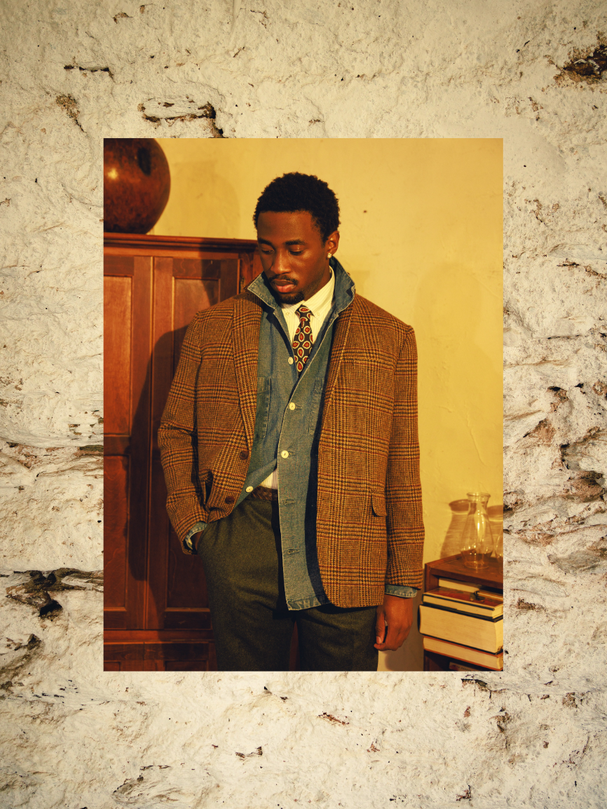The Glen Check Tweed Blazer, Cotton Linen Chambray Overshirt, Paisley Blue Tie, Slow Weave Oxford, The Eastman Trouser
