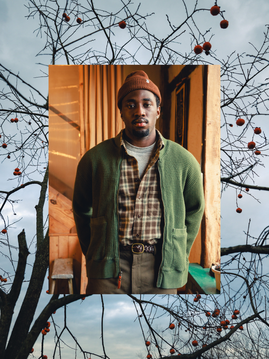 Waffle Knit Bomber Jacket, Brushed Plaid Button Down (Coming Soon), New Standard Pocket Tee, Merino Cardigan Stitch Beanie, Cavalry Twill Pant