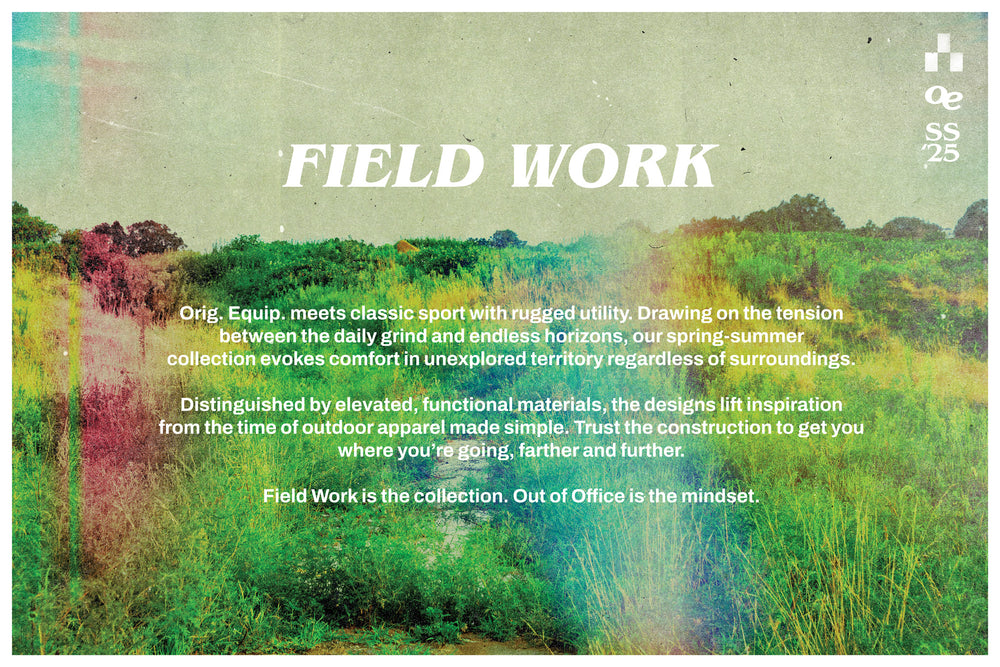 Orig. Equip. meets classic sport with rugged utility. Drawing on the tension between the daily grind and endless horizons, our spring-summer collection evokes comfort in unexplored territory regardless of surroundings.