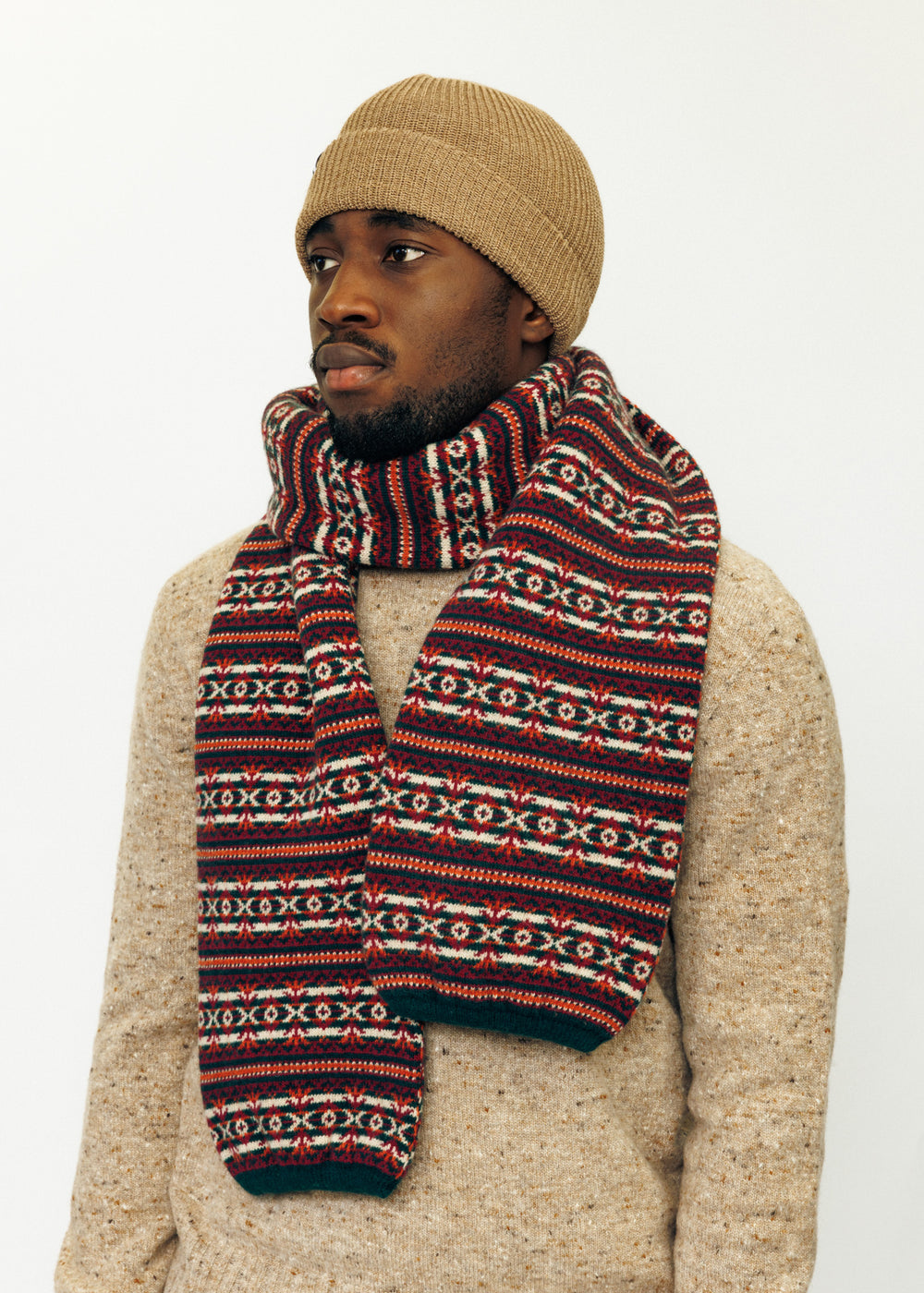 The Wool Fair Isle Scarf borrows a classic Fair Isle motif for the coldest months of the year. Its Scottish roots seem appropriate; that's to say, you might've guessed these intarsia knits drew from ye olde inspiration. We sourced the wool from Scotland for ultimate authenticity and warmth too.