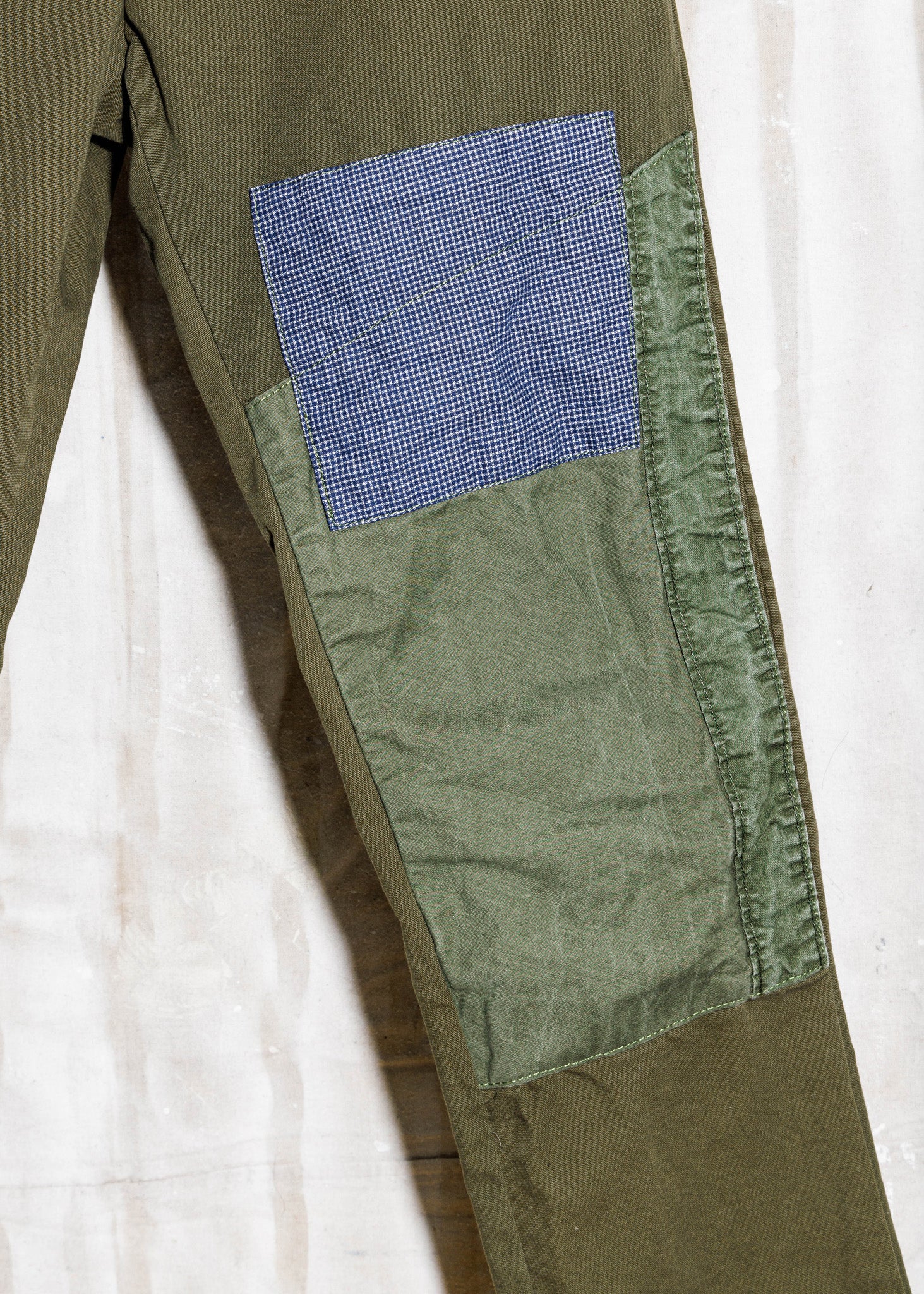For Hamid to cover with his vision, we chose a cotton canvas from Spain that is already soft enough for the first wear. It is a sanded canvas, meaning that the plain weave of the fabric is a lot smoother than expected. It maintains all of the durability and long-term characteristics canvas develops over time, so the pants will only get better with wear.