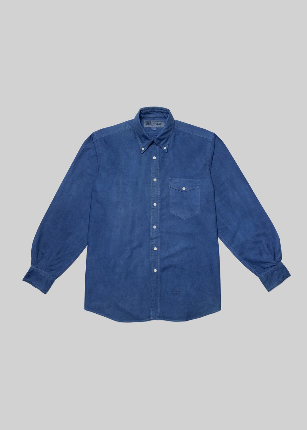 A classic OCBD, dyed by hand with natural materials. No two are alike – and every single one is hand-branded with our collaboration stamp in our studio.