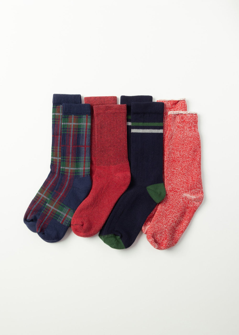 Includes: The Supermerino in Red | The McCallister Plaid Sock in Navy | The Sunday Sock in Red | The Ivy Stripe Sock in Navy