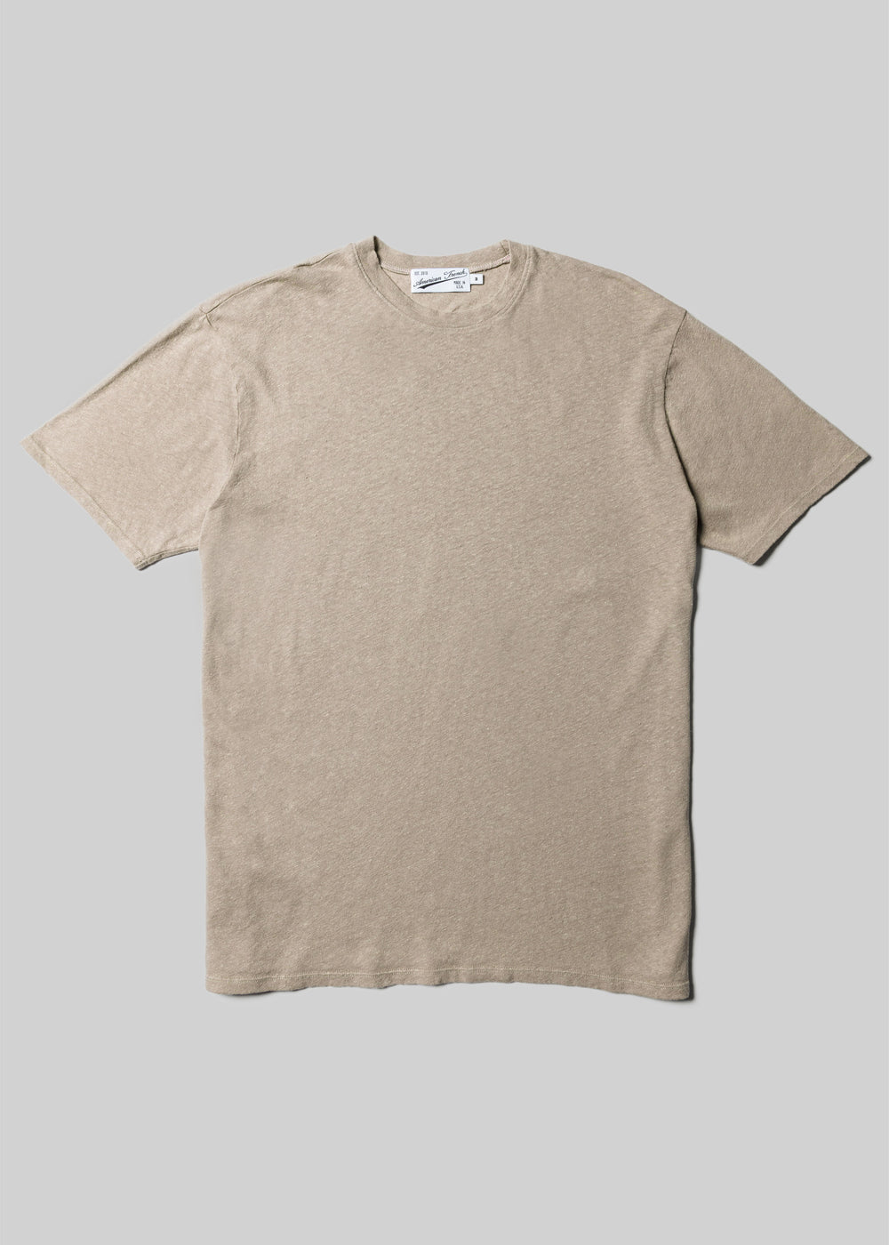 The Cotton Linen Tee maintains great tensile strength despite its ultra-light summer weight. The slight wrinkle common to any linen-blend garment is a welcome element of this strong seasonal essential.