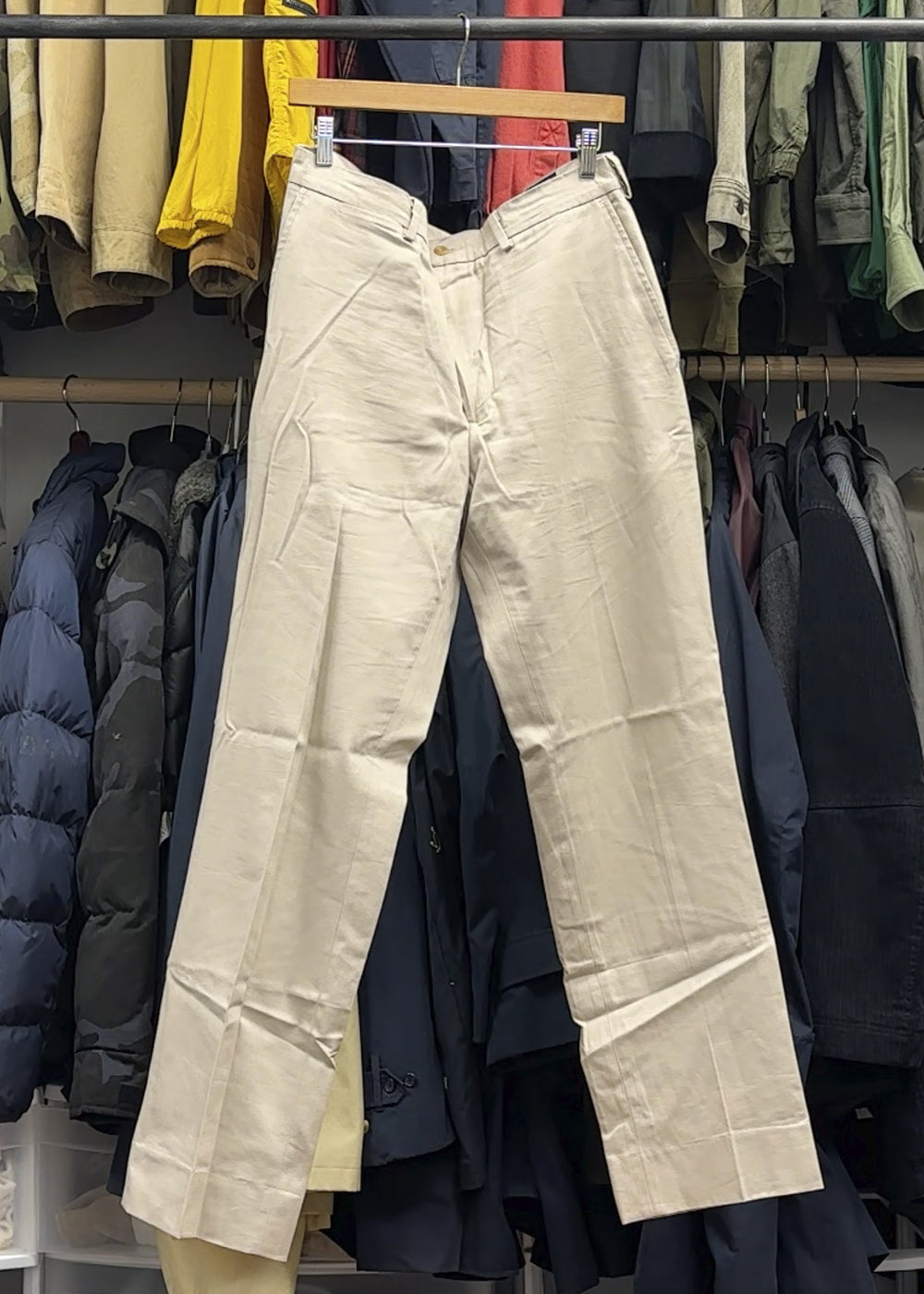 Our first few samples of standard fit trousers took some changes to get right, but this is the one where we nailed it. Soft 100% cotton canvas. Made in Georgia.Measurements:Waist – 35” Inseam – 32”