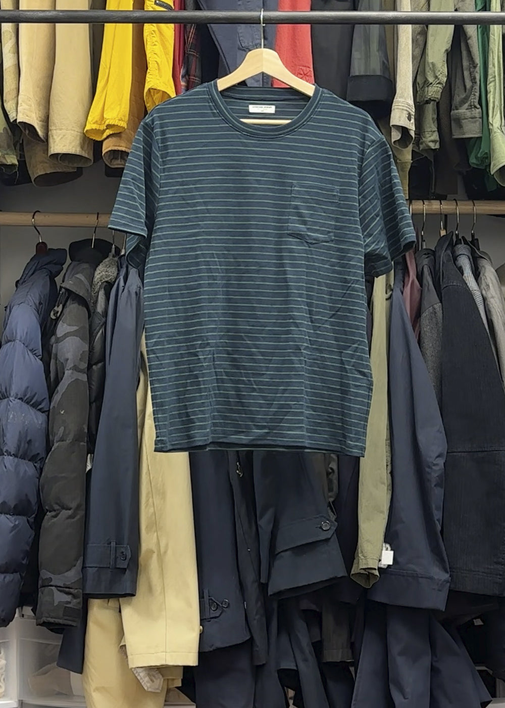 Custom striped fabric in our pocket tee shape, basking in the archive room.Measurements:Chest – 20” HPS – 26”