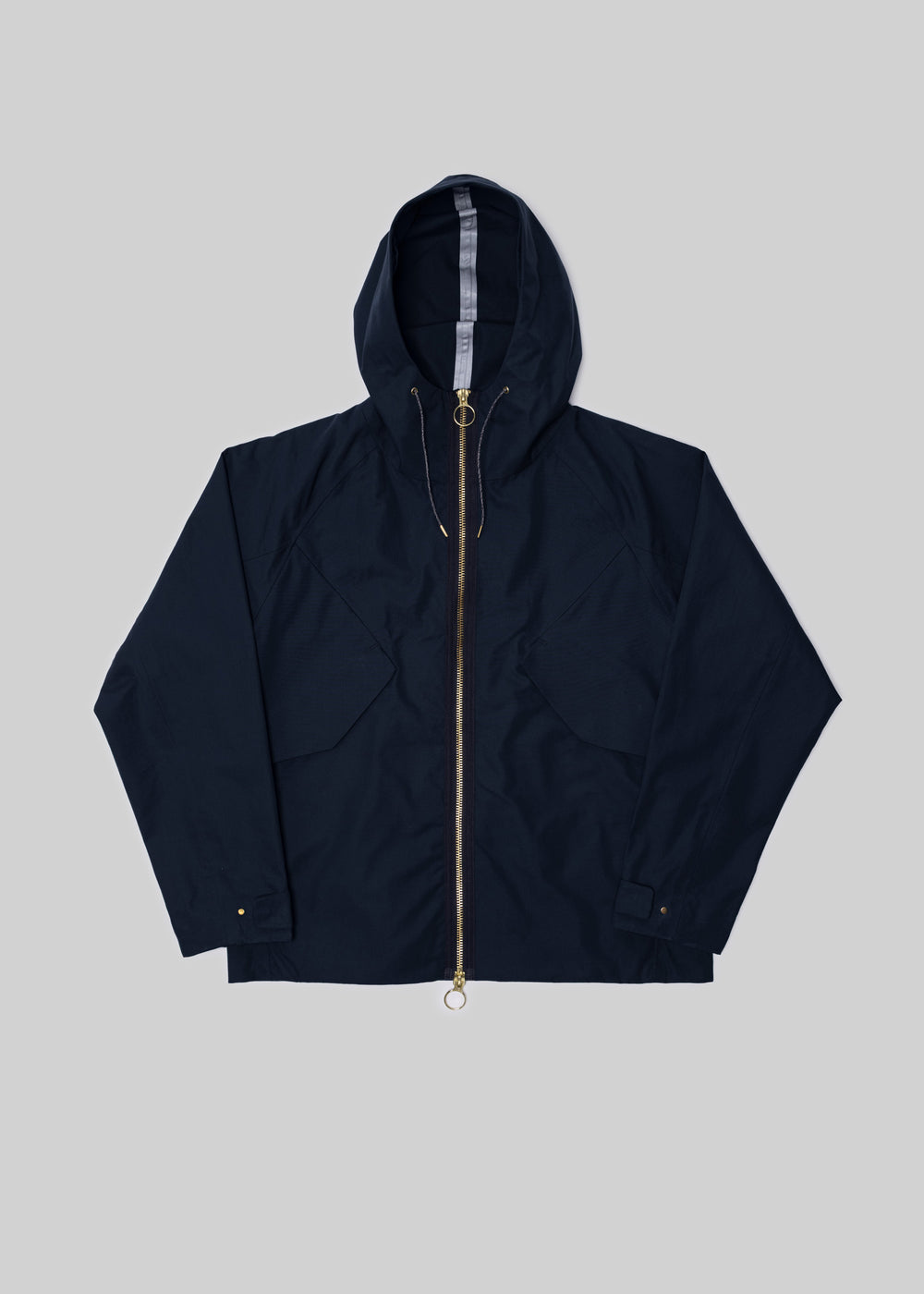 The jacket is unlined with a fully-taped construction. Seam taping is a detailed process, sealing every seam for additional protection from the elements. Two side-entry zip pockets sit beneath deep, flap-protected pockets. Italian gold-plated snaps and a rugged two-way zipper refine the look and elevate the everyday. Every element has purpose: the collar stance, the bungee-adjustable hood, the articulated sleeves, the shaped hem. All designed for real weather and real life.
