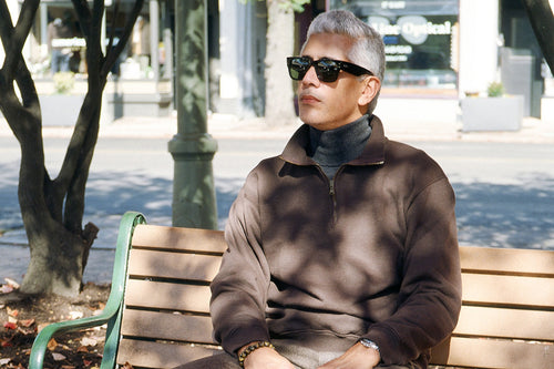 Garment-Dyed Terry Quarter Zip, Merino Turtleneck